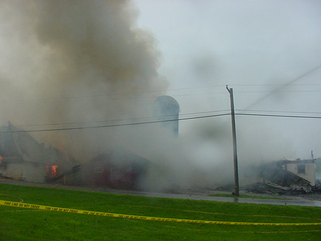 While most of the buildings were still standing when the frist chiefs arrived, most of the barn looked like this within 20 minutes.